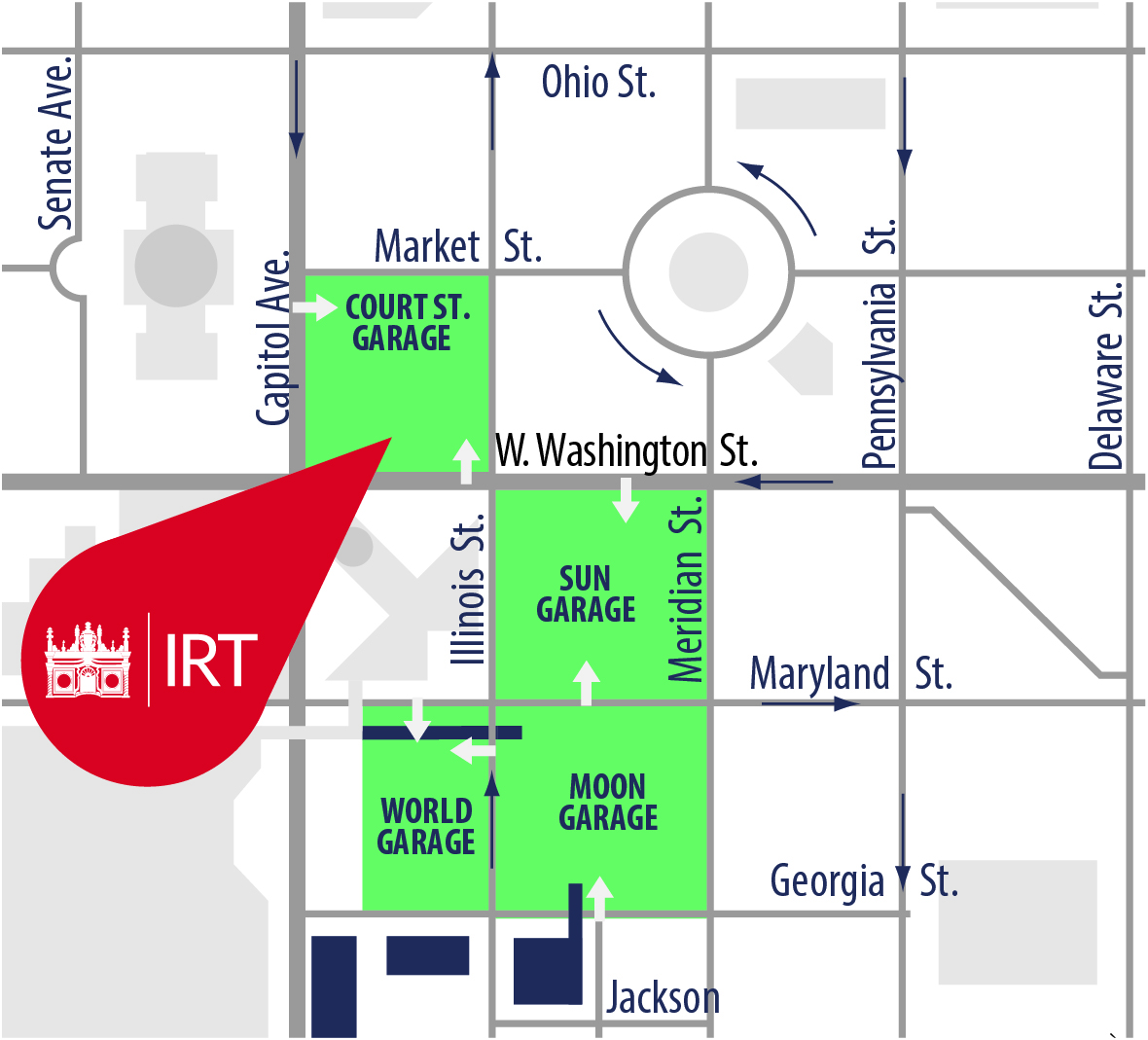 Downtown Indianapolis is a busy place! To help with your arrival for an IRT performance, the Theatre offers coupons for nearby garages and is near stops on IndyGo routes, including the Red Line.